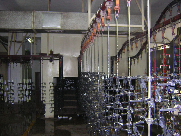 迂回式園盤油漆涂裝設備適用于工件尺寸小、結(jié)構無屏閉型腔工 件的靜電自動噴涂。選用進口齒輪供漆泵。 輸漆泵和噴盤上下速度同步變化。 自動調(diào)控電動升降機。 具有手動和自動控制二種輸漆方式。Ω迂回式園盤油漆涂裝設備 采用進口變頻器和電氣控制元件。 涂裝室廢氣經(jīng)處理后達標排放符合國家環(huán)保標準要求。 直線型油漆涂裝設備適用于各工件特別是工件尺寸大結(jié)構復雜的工件涂裝。 可根據(jù)產(chǎn)品質(zhì)量要求設計涂裝工位數(shù)量。 涂裝室為水簾或油簾型式,廢氣經(jīng)處理后達標排放,符合國家環(huán)保標準。 供漆方式為壓送式或齒輪泵型式,根據(jù)產(chǎn)品的涂裝特點具體設計選擇。 涂裝室的空氣凈化環(huán)境要求根據(jù)產(chǎn)品及用戶要求設計選擇。 噴漆烤漆一體化兩用房主要用汽車車身及特大工件的噴烤漆之用。送風:送風空氣經(jīng)二級凈化處理,最終達到中效或亞高效凈化效果 。排氣:雙層過濾形式,迷宮式擋漆板加進口過濾材料。 照明:全封閉式日光照明燈 。 加熱:選用進口輕油燃燒主機間接加熱 。噴烤漆房:雙向彩鋼夾心板。 |