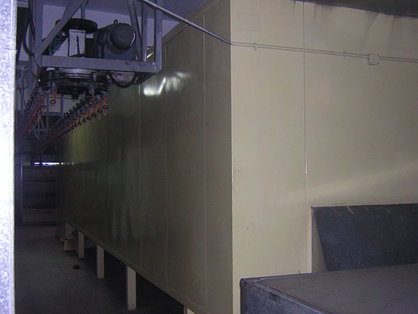 迂回式園盤油漆涂裝設備適用于工件尺寸小、結構無屏閉型腔工 件的靜電自動噴涂。選用進口齒輪供漆泵。 輸漆泵和噴盤上下速度同步變化。 自動調(diào)控電動升降機。 具有手動和自動控制二種輸漆方式。Ω迂回式園盤油漆涂裝設備 采用進口變頻器和電氣控制元件。 涂裝室廢氣經(jīng)處理后達標排放符合國家環(huán)保標準要求。 直線型油漆涂裝設備適用于各工件特別是工件尺寸大結構復雜的工件涂裝。 可根據(jù)產(chǎn)品質(zhì)量要求設計涂裝工位數(shù)量。 涂裝室為水簾或油簾型式,廢氣經(jīng)處理后達標排放,符合國家環(huán)保標準。 供漆方式為壓送式或齒輪泵型式,根據(jù)產(chǎn)品的涂裝特點具體設計選擇。 涂裝室的空氣凈化環(huán)境要求根據(jù)產(chǎn)品及用戶要求設計選擇。 噴漆烤漆一體化兩用房主要用汽車車身及特大工件的噴烤漆之用。送風:送風空氣經(jīng)二級凈化處理,最終達到中效或亞高效凈化效果 。排氣:雙層過濾形式,迷宮式擋漆板加進口過濾材料。 照明:全封閉式日光照明燈 。 加熱:選用進口輕油燃燒主機間接加熱 。噴烤漆房:雙向彩鋼夾心板。 |