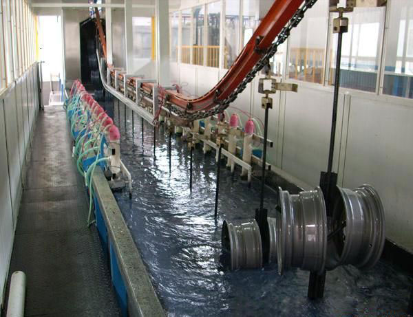 涂裝機(jī)械中電泳涂裝是近年來最普及的涂底漆的方法之一,它是將具有導(dǎo)電性的被涂物作為陰極(或陽極)浸漬在用純水稀釋的、固體濃度為18%左右的電泳涂料槽液中,在槽中另設(shè)置與其相對應(yīng)的陽極(或陰極),在兩極間通一定時間的直流電,在被涂物上析出均勻且水不溶解的涂膜的一種涂裝方法。適用于汽車摩托車車身及零部件表面底漆涂裝、工藝品裝飾涂裝、機(jī)電產(chǎn)品防腐涂裝等。